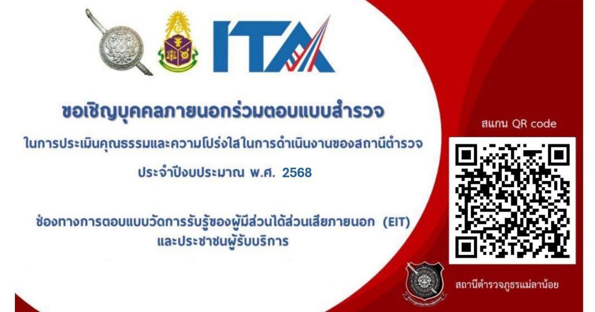 ขอเชิญบุคคลภายนอกร่วมตอบแบบสำรวจ ในการประเมินคุณธรรมและความโปร่งใสในการดำเนินงานของ สภ.แม่ลาน้อย ประจำปีงบประมาณ 2568