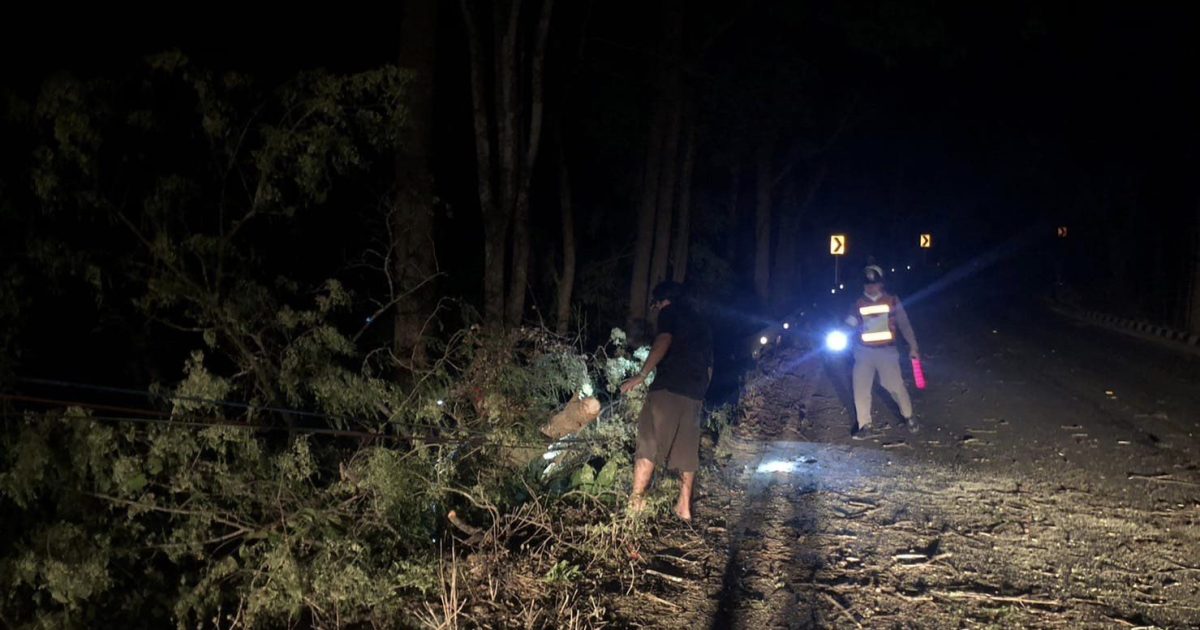 “รับแจ้งต้นไม้ล้มขวาง ถนน 108 กีดขวางการจราจร ทำให้สัญจรลำบาก”